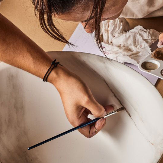 The artists of the Bathco Ateliers use the lightness and resilience of porcelain and use it as a white canvas to reproduce magma, wood or microcement as well as a variety of textures and colors. These sinks are processed piece by piece so that each sink has a unique and distinctive character.