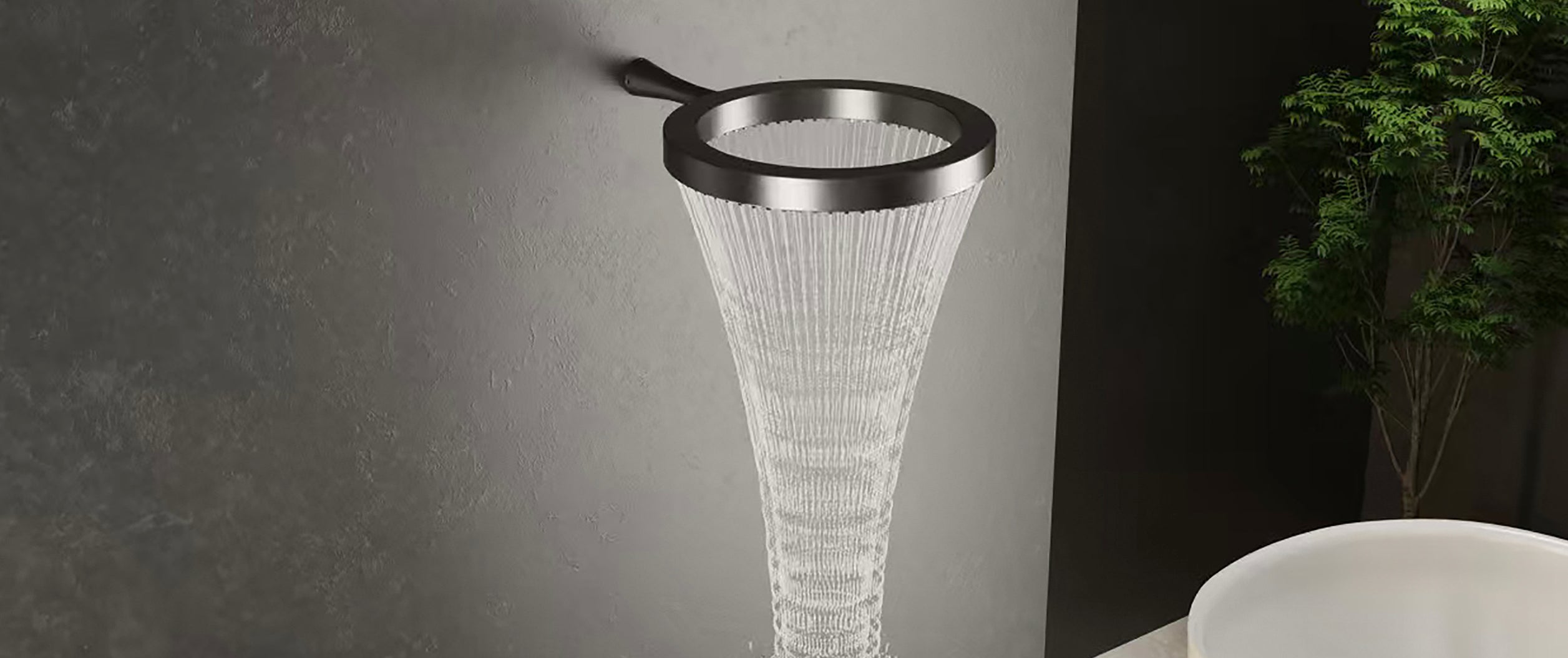 SURROUND SHOWER – THE ULTIMATE WATER EMBRACE.Unsere Ringduschen inszenieren Wasser neu: gleichmäßig ausgerichtete Strahldüsen erzeugen einen sanften, gleichmäßigen Wassernebel, der sich schwebend um den Körper legt.