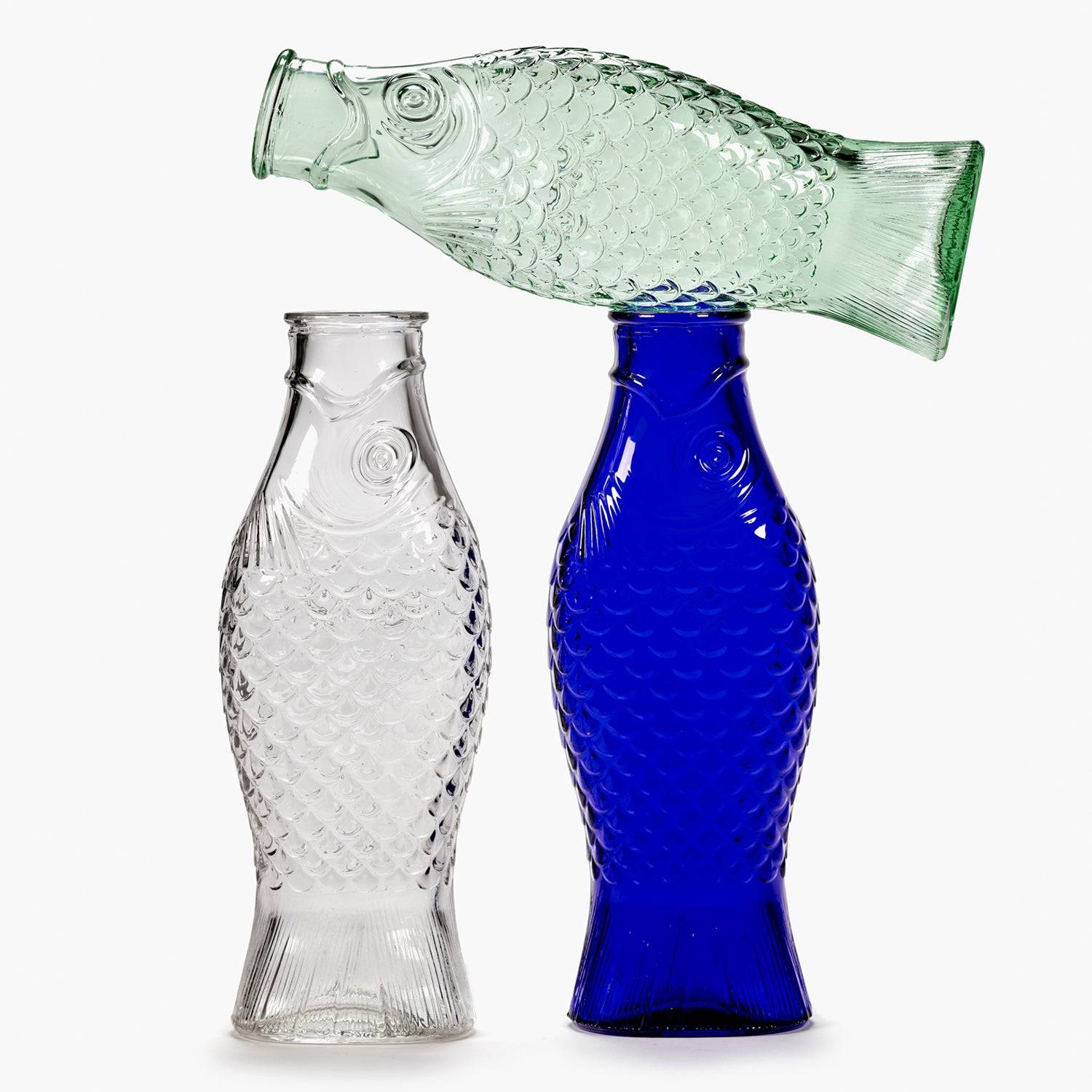 The carafe of the Fish & Fish collection has almost cult. Form, color and functionality create the bridge between usability and design. This product belongs to the Fish & Fish glass collection by Paola Navone.