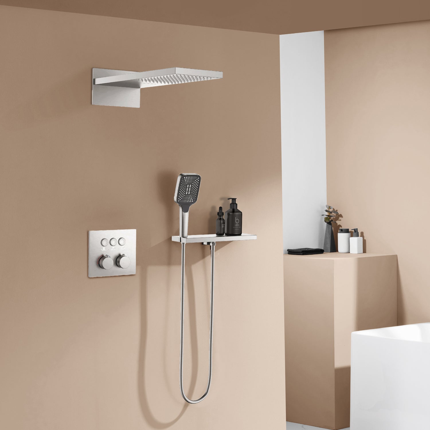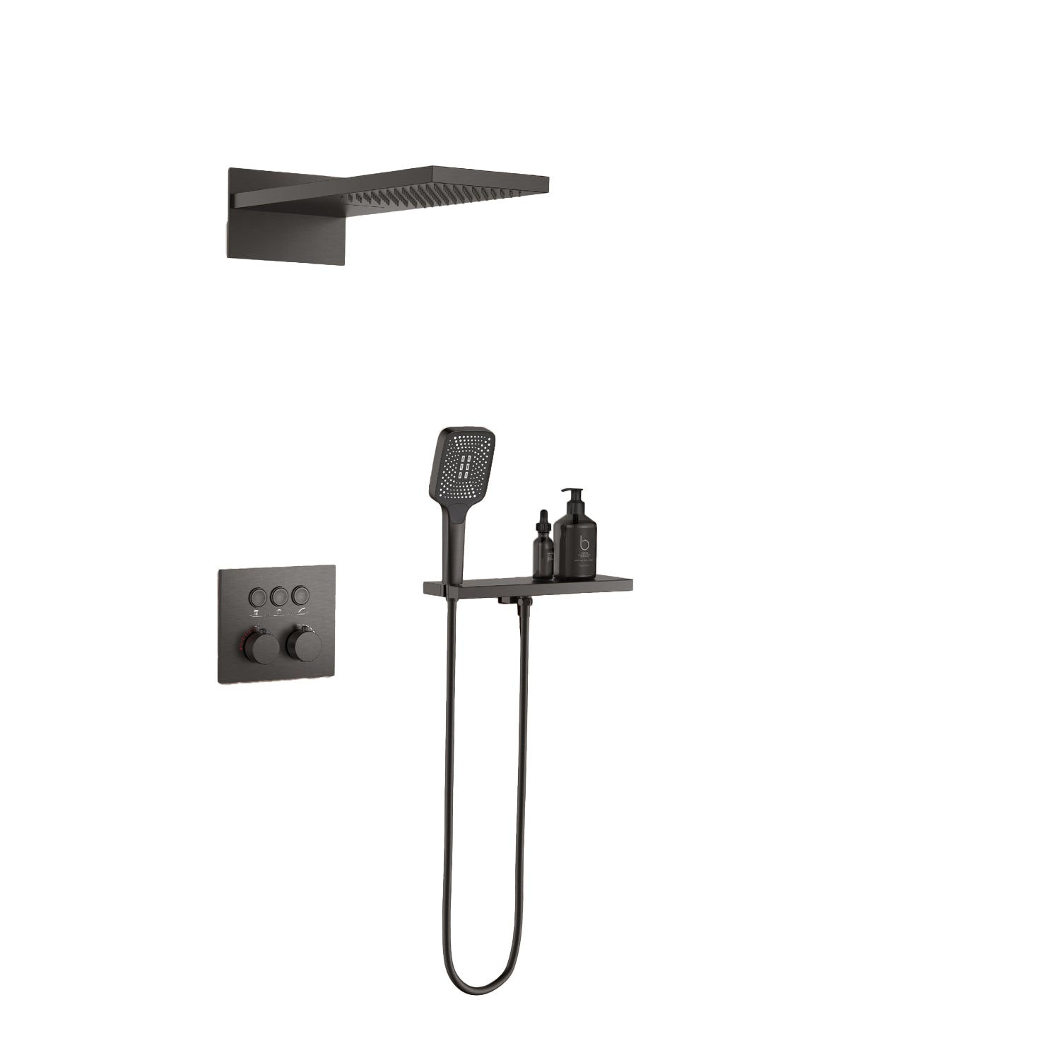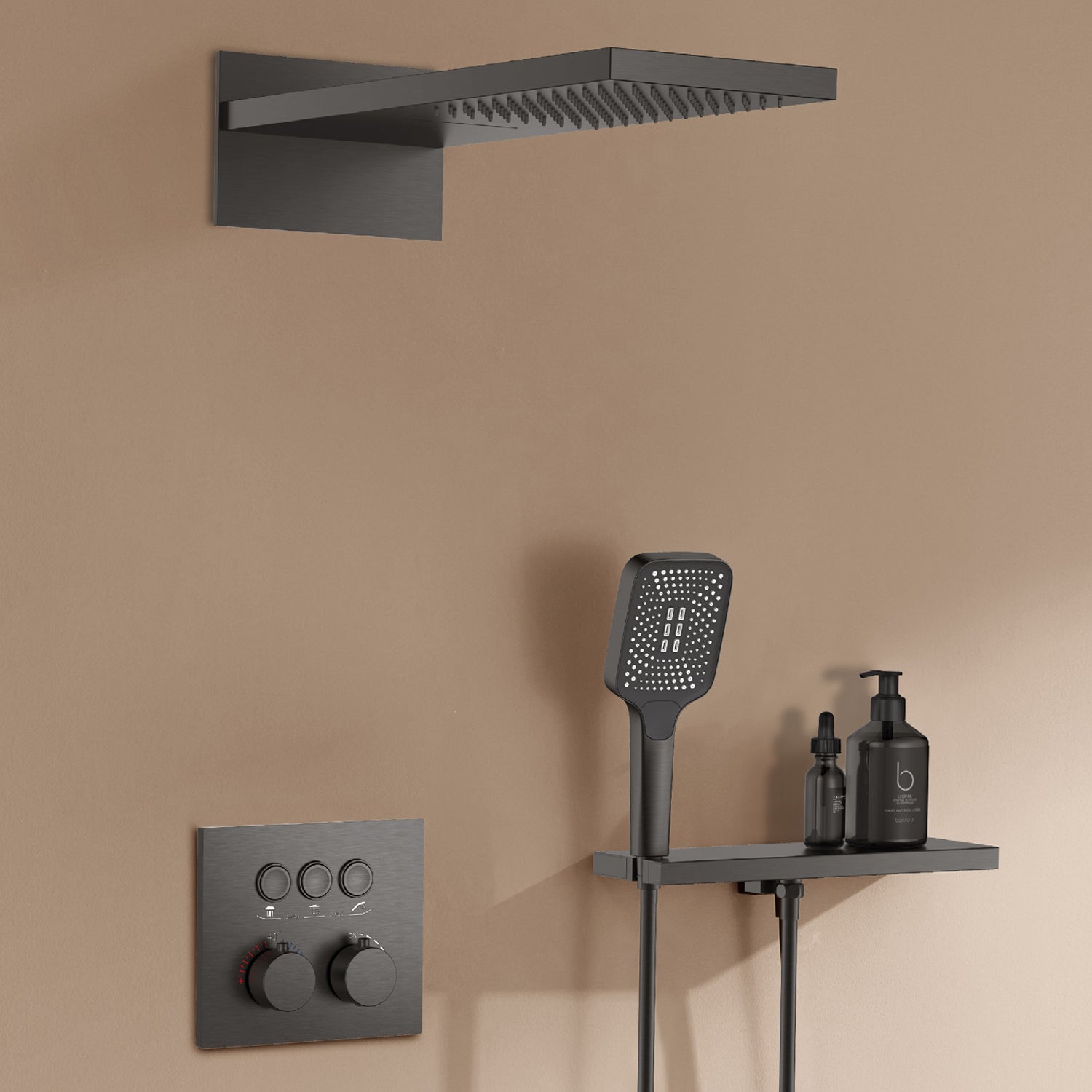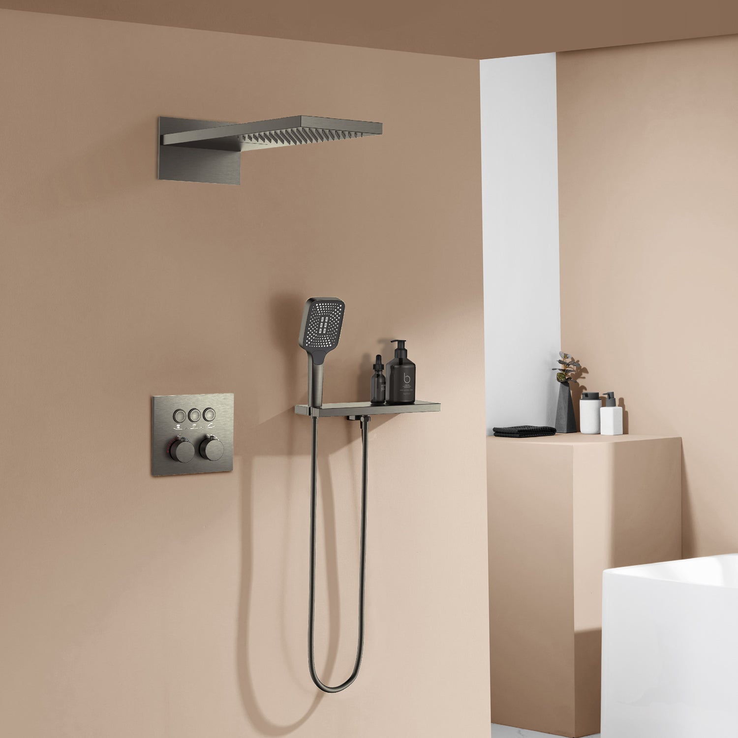 Bewater Duschsystem - Komplettset - mit Handbrause - mit Regenbrause - mit Schwallbrause - Brushed Gun Metal