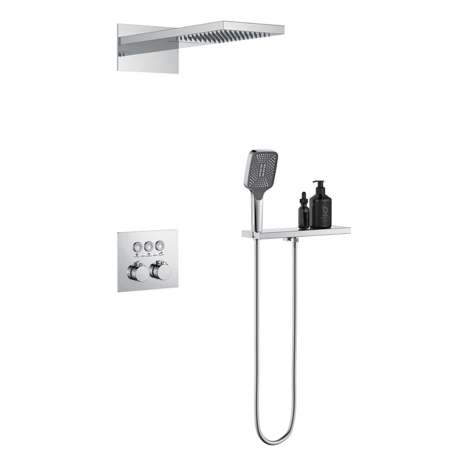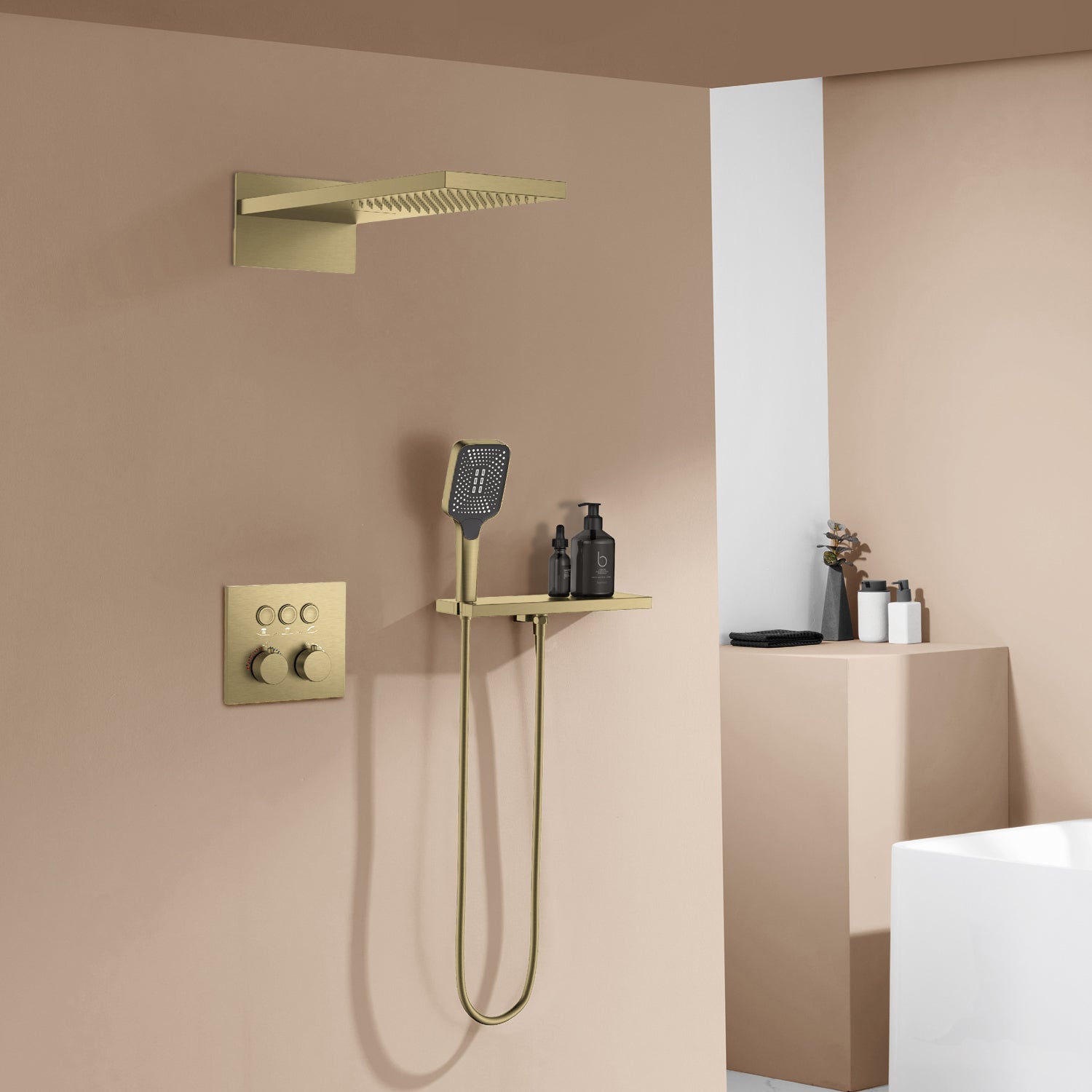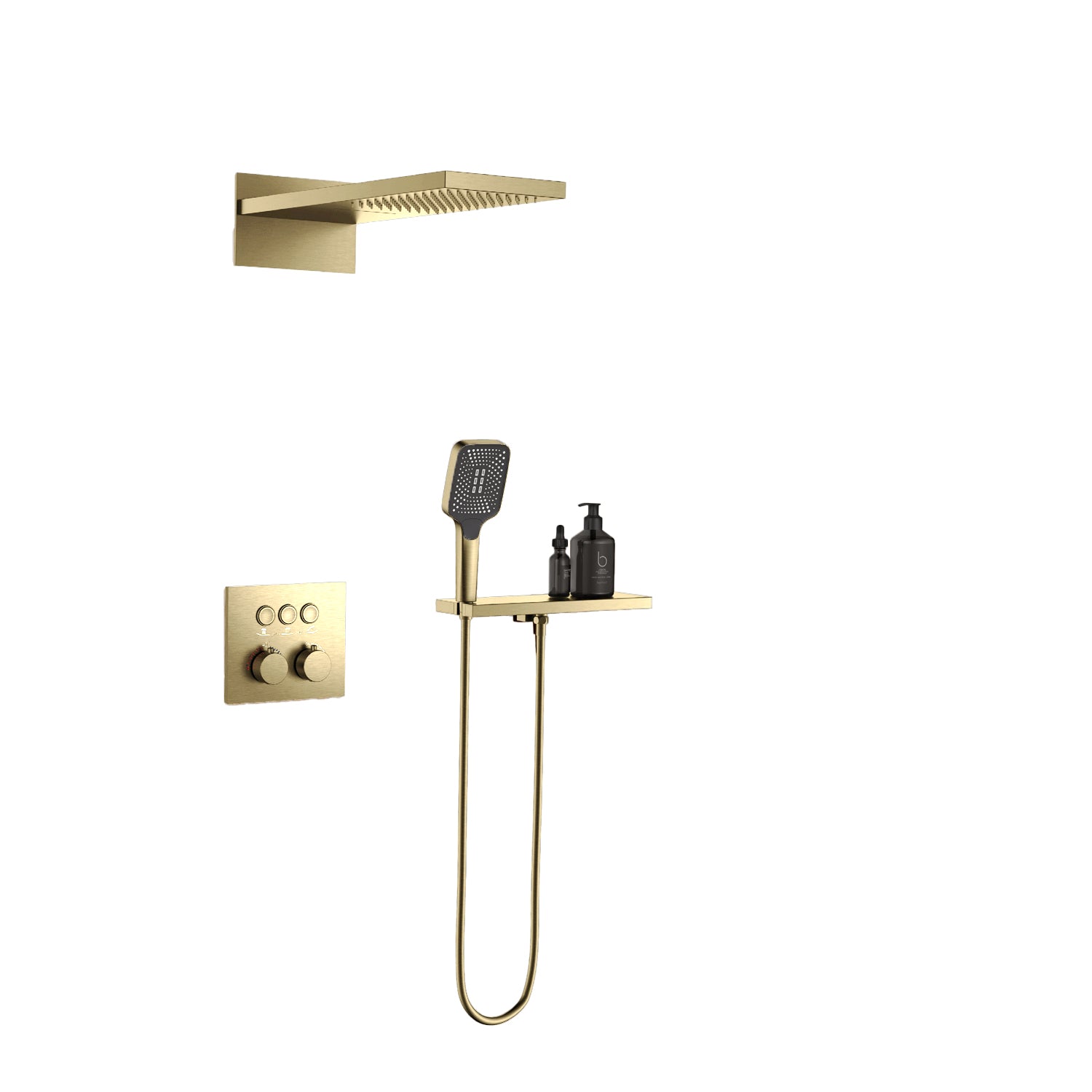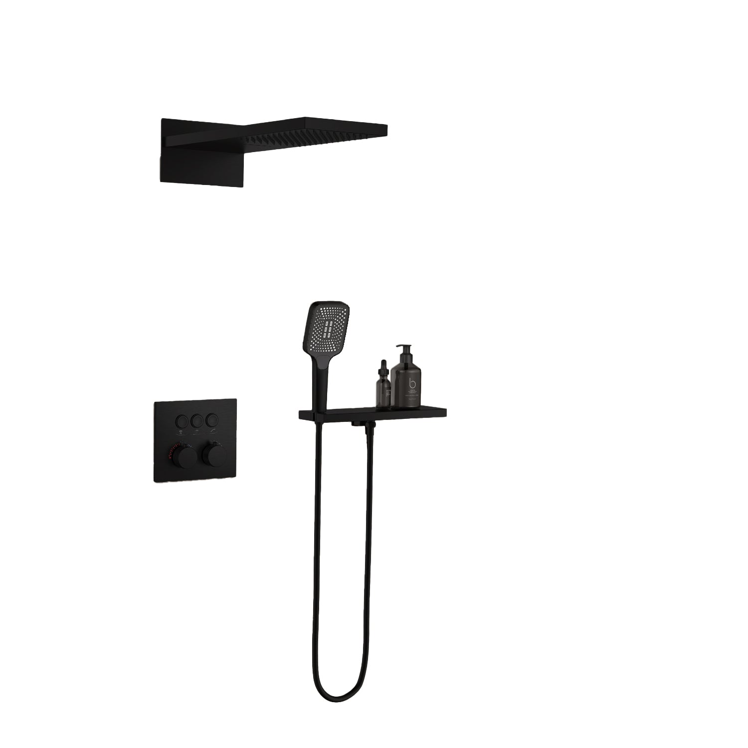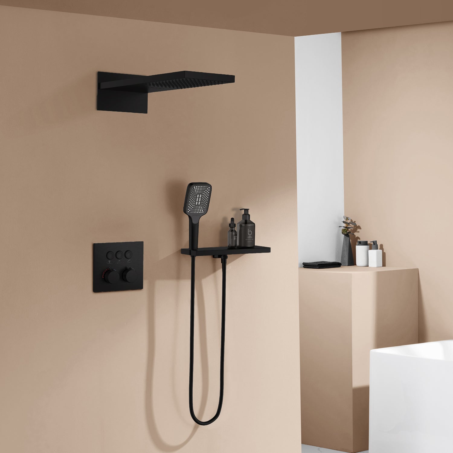 Bewater Duschsystem - Komplettset - mit Handbrause - mit Regenbrause - mit Schwallbrause - Brushed Gun Metal