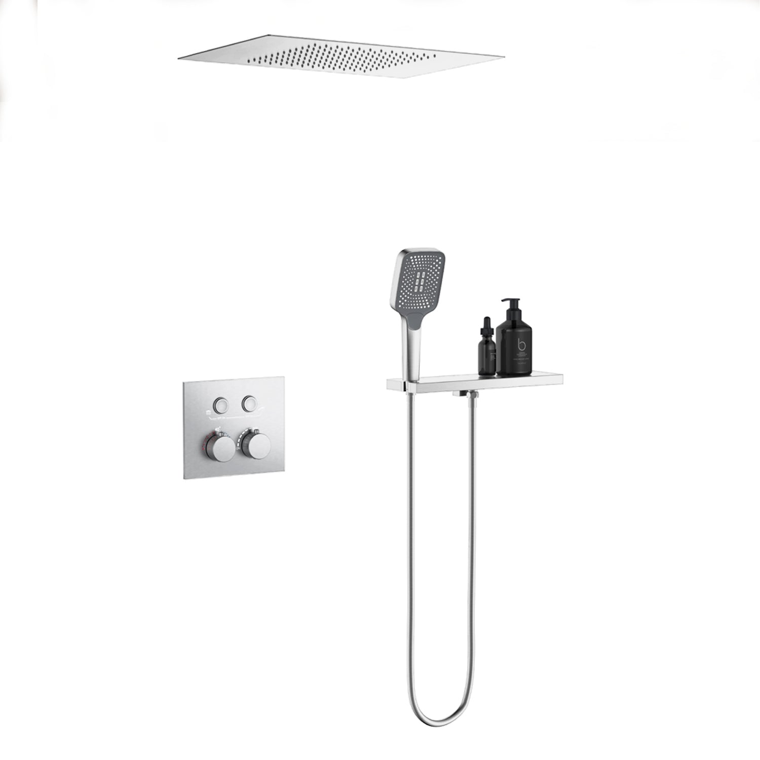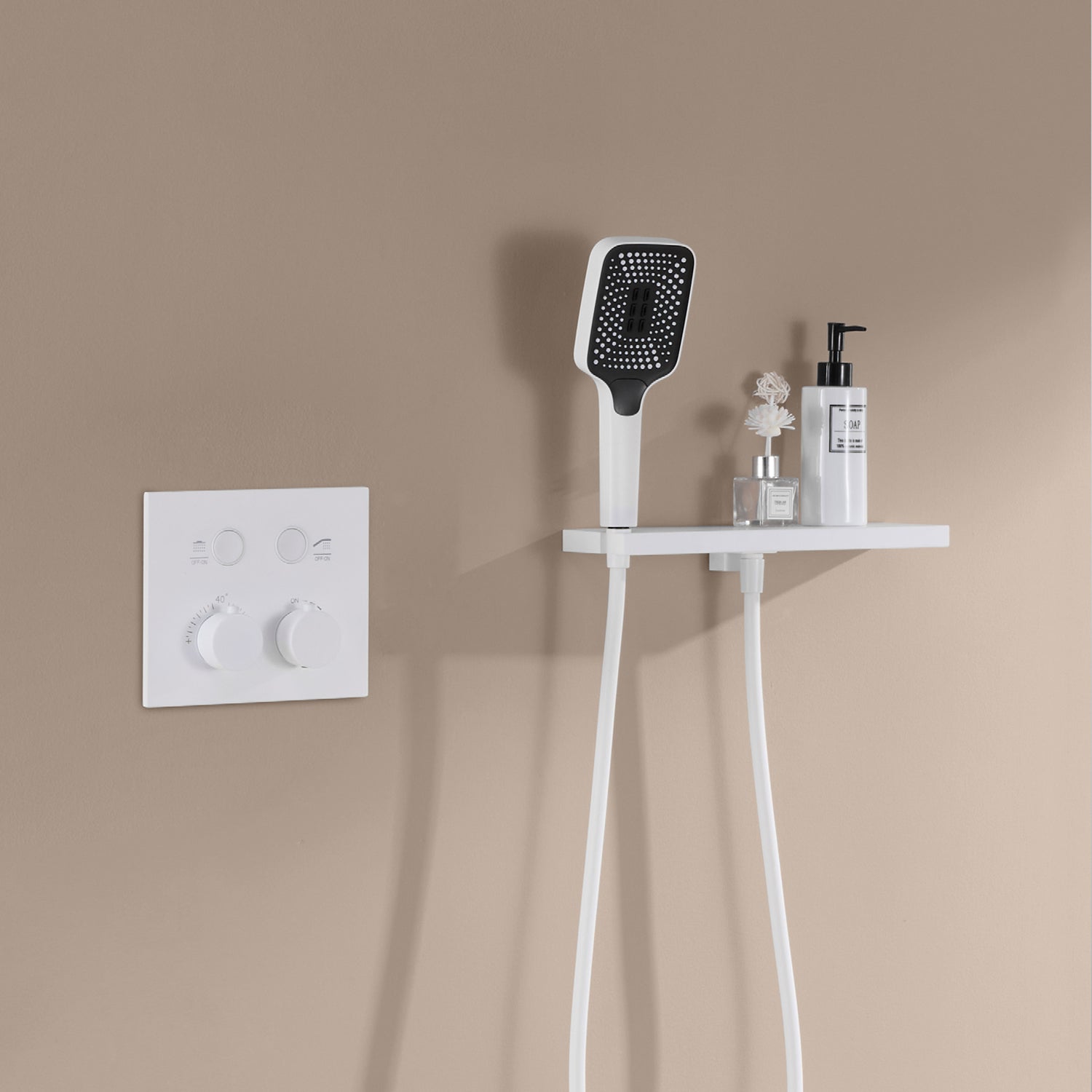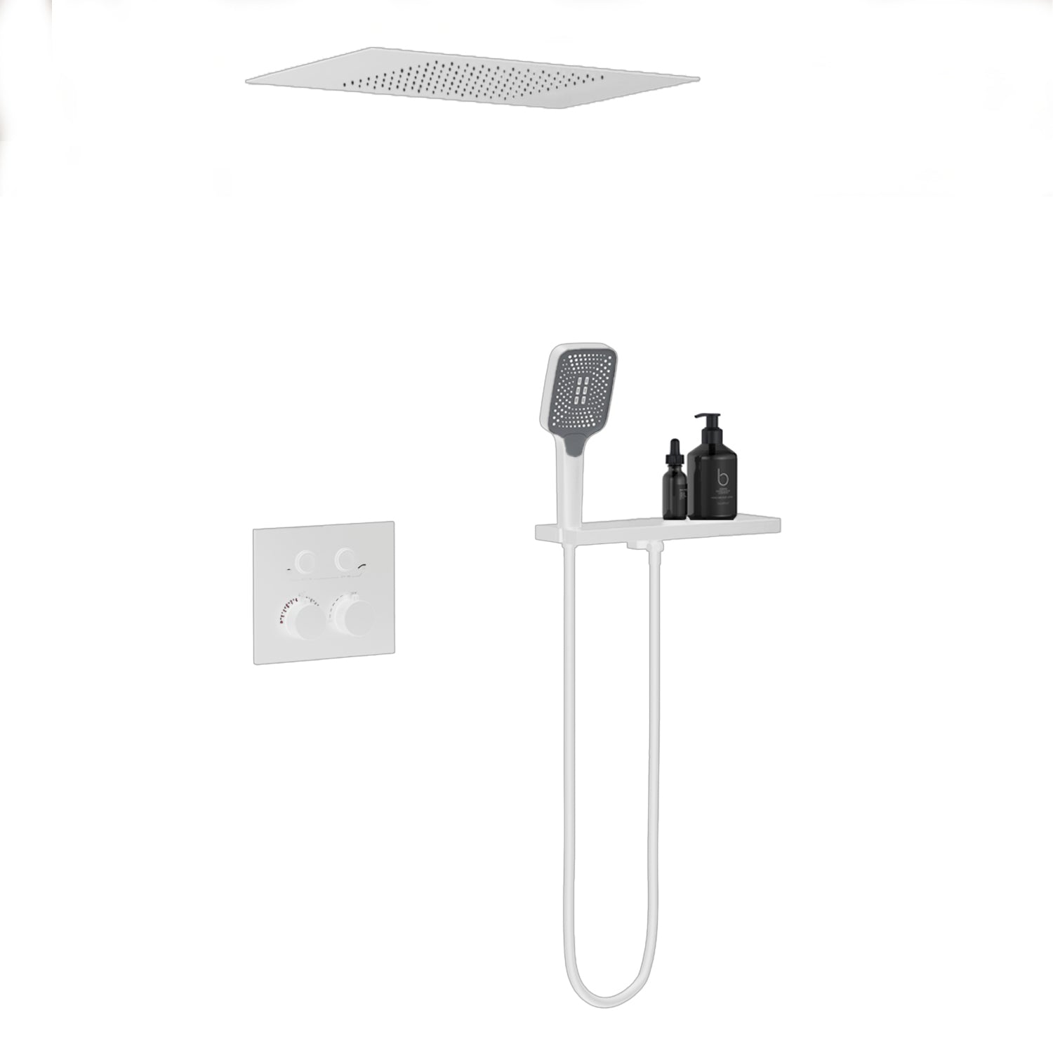 Bewater Duschset, Komplettset mit Handbrause, Regenbrause und Unterputzarmatur - Weiß Matt