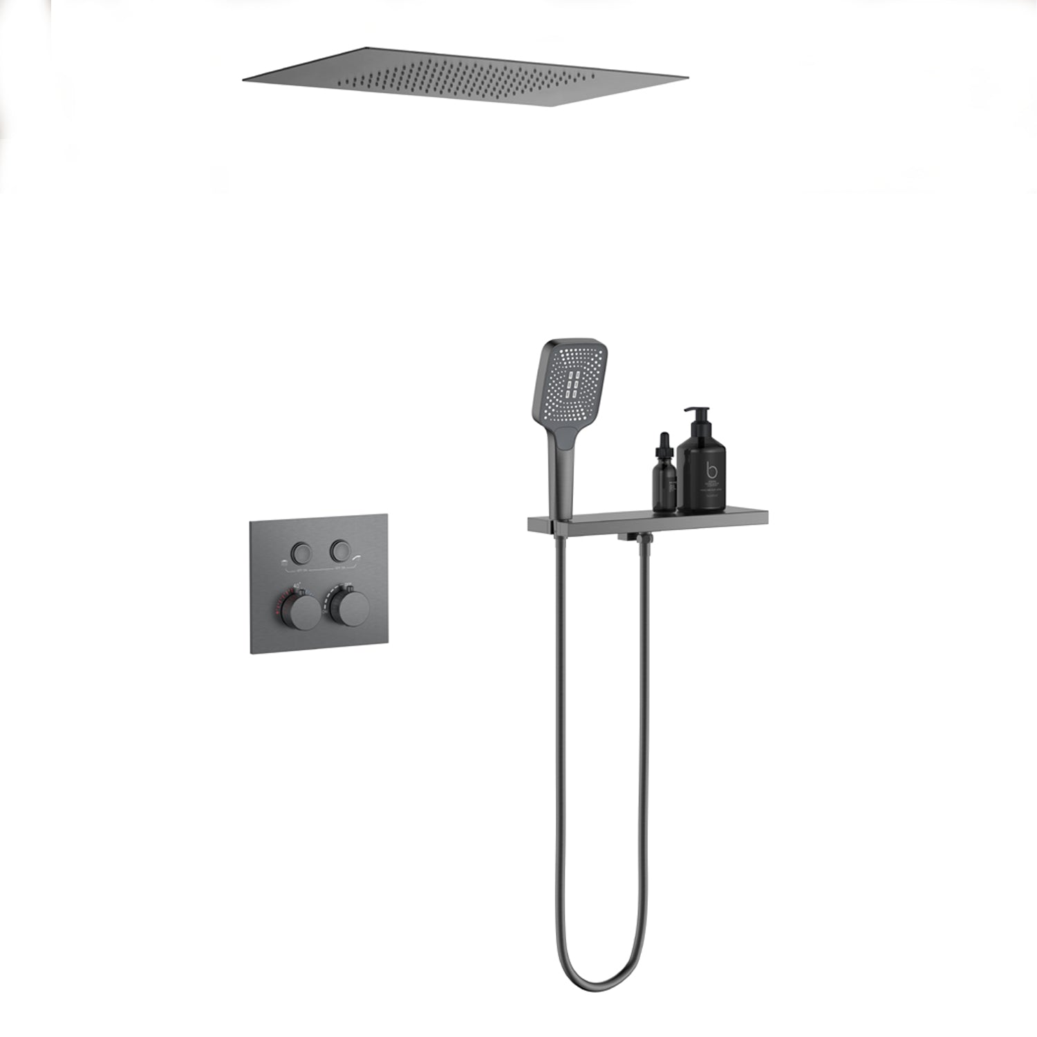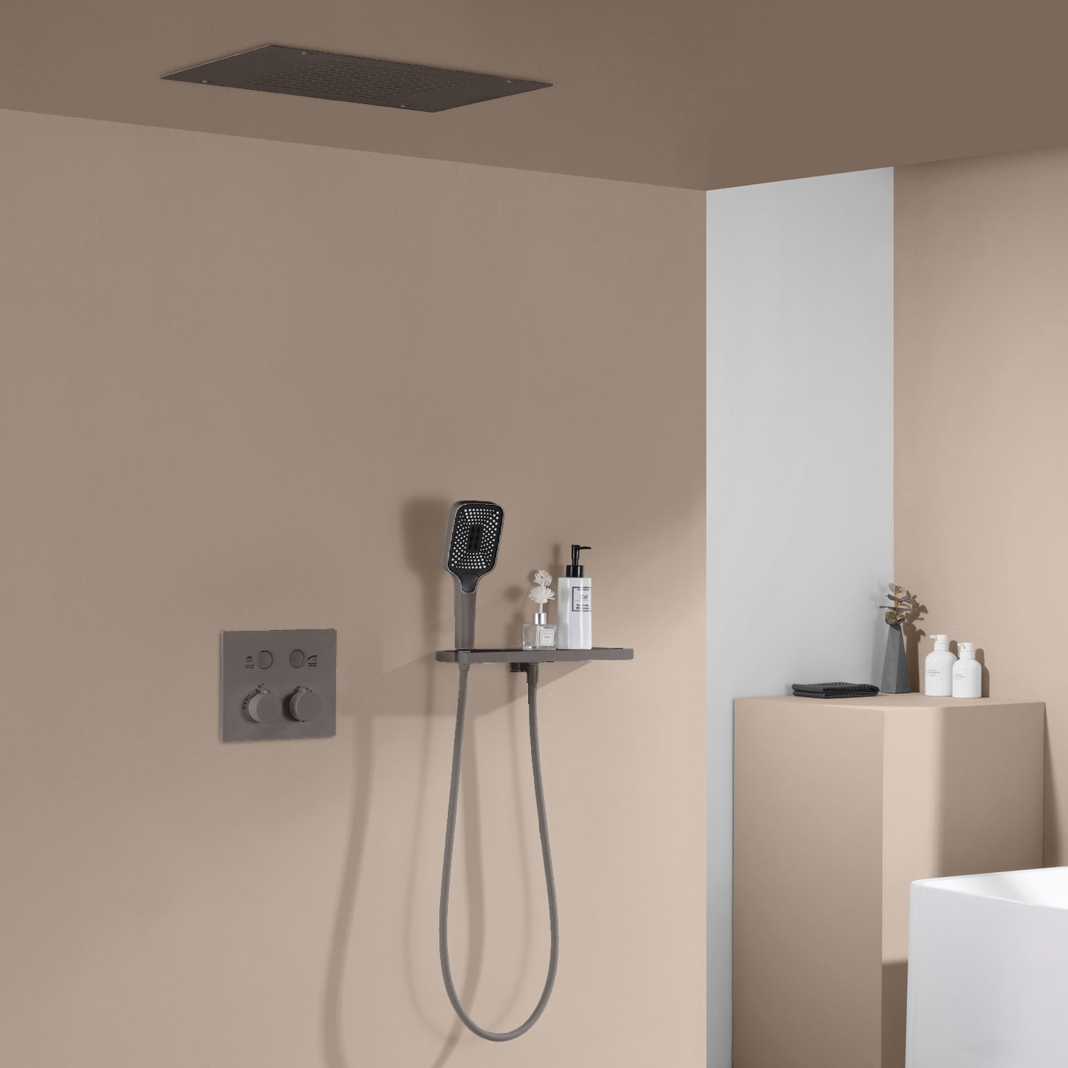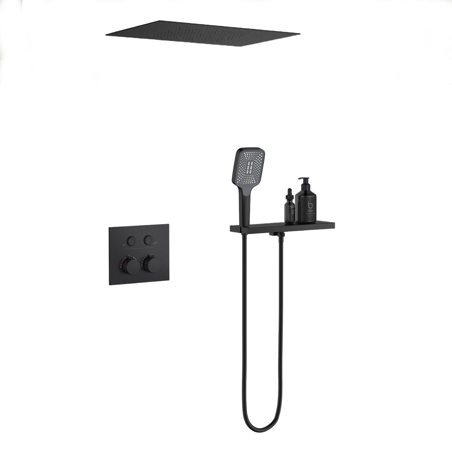 Bewater Duschset, Komplettset mit Handbrause, Regenbrause und Unterputzarmatur - Weiß Matt