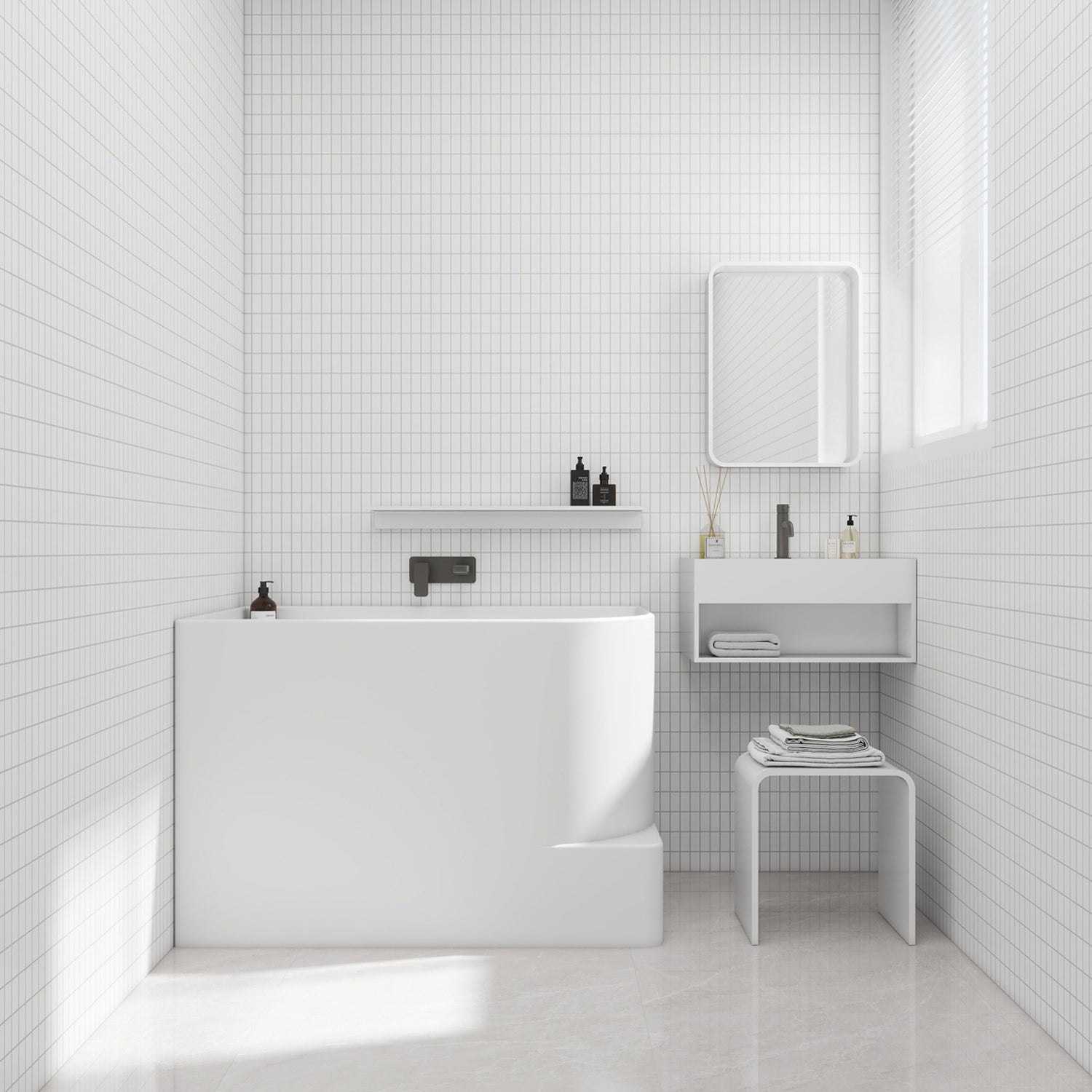 Bewater Eck-Badewanne rechts -Matt White - Solid Surface