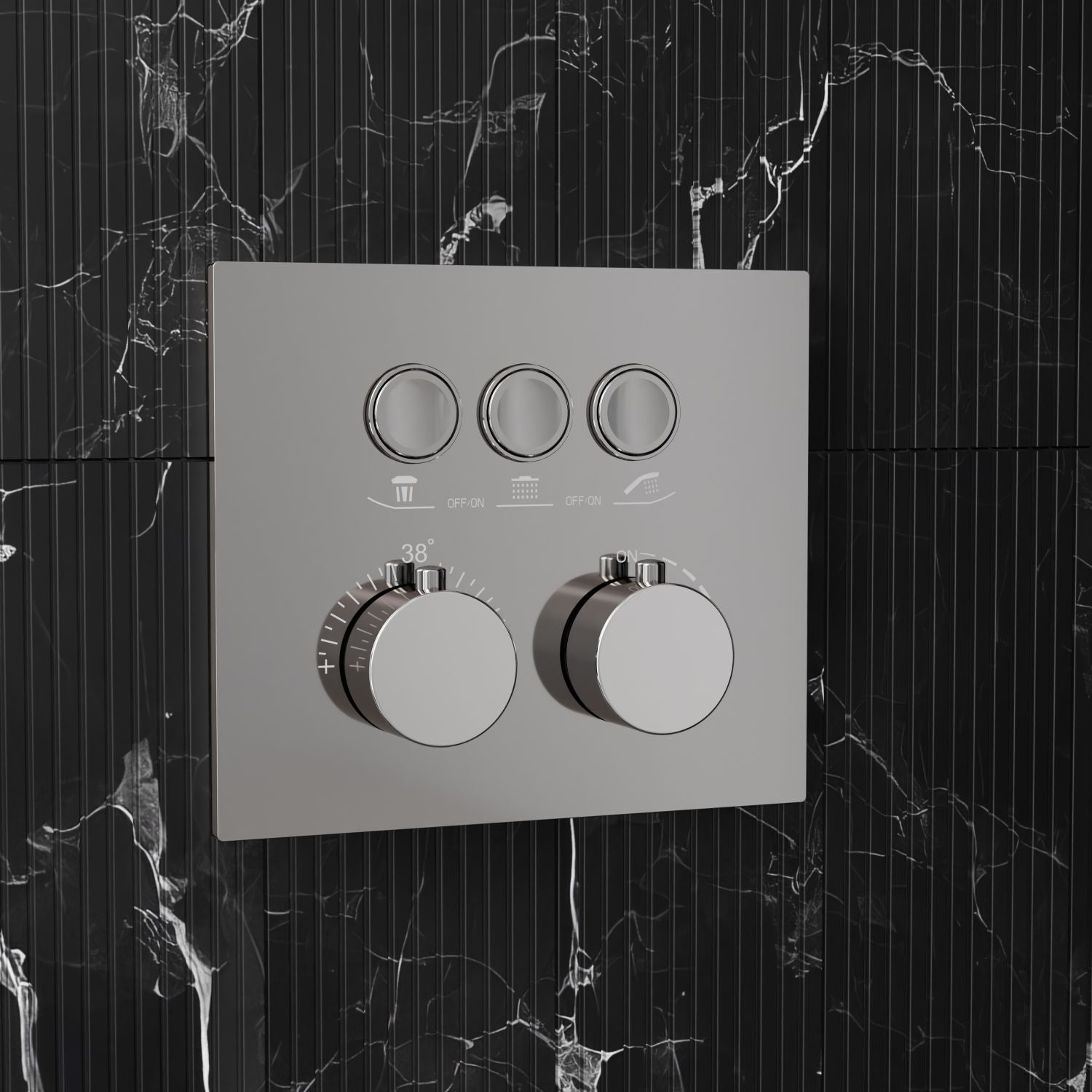 Bewater Unterputz-Thermostatarmatur - Chrome, mit Pushtronic Bedienkomfort, für 3 Verbraucher