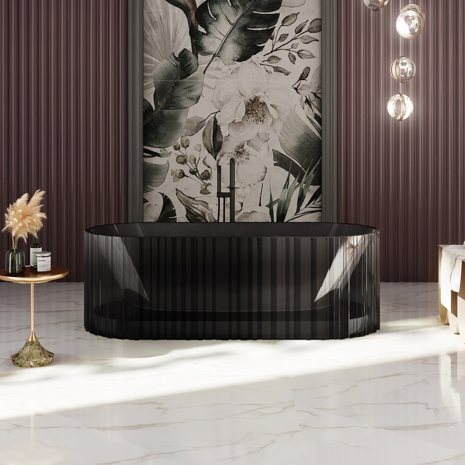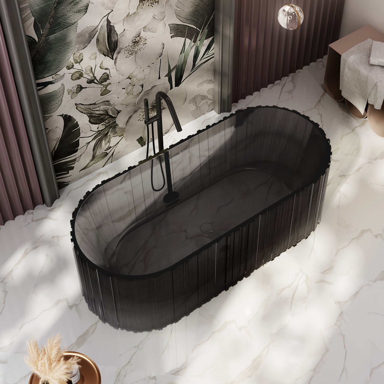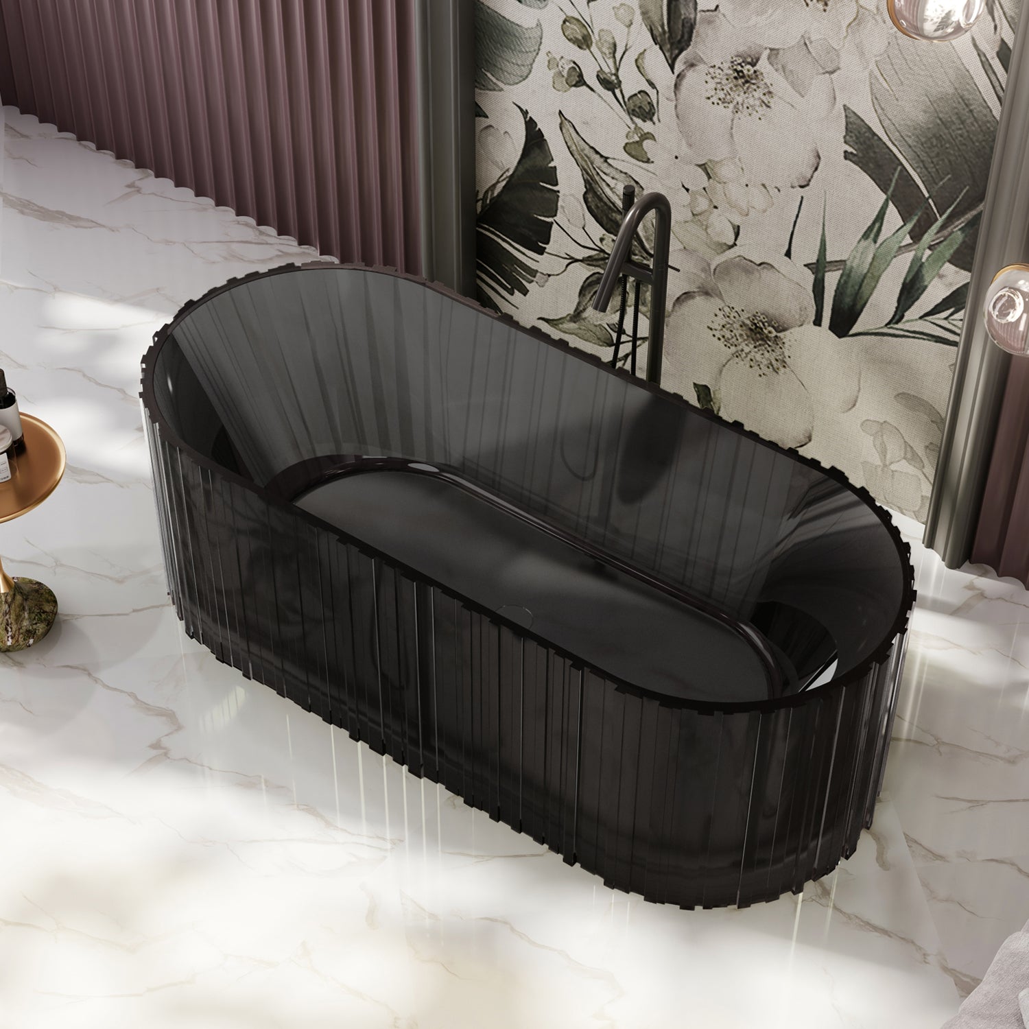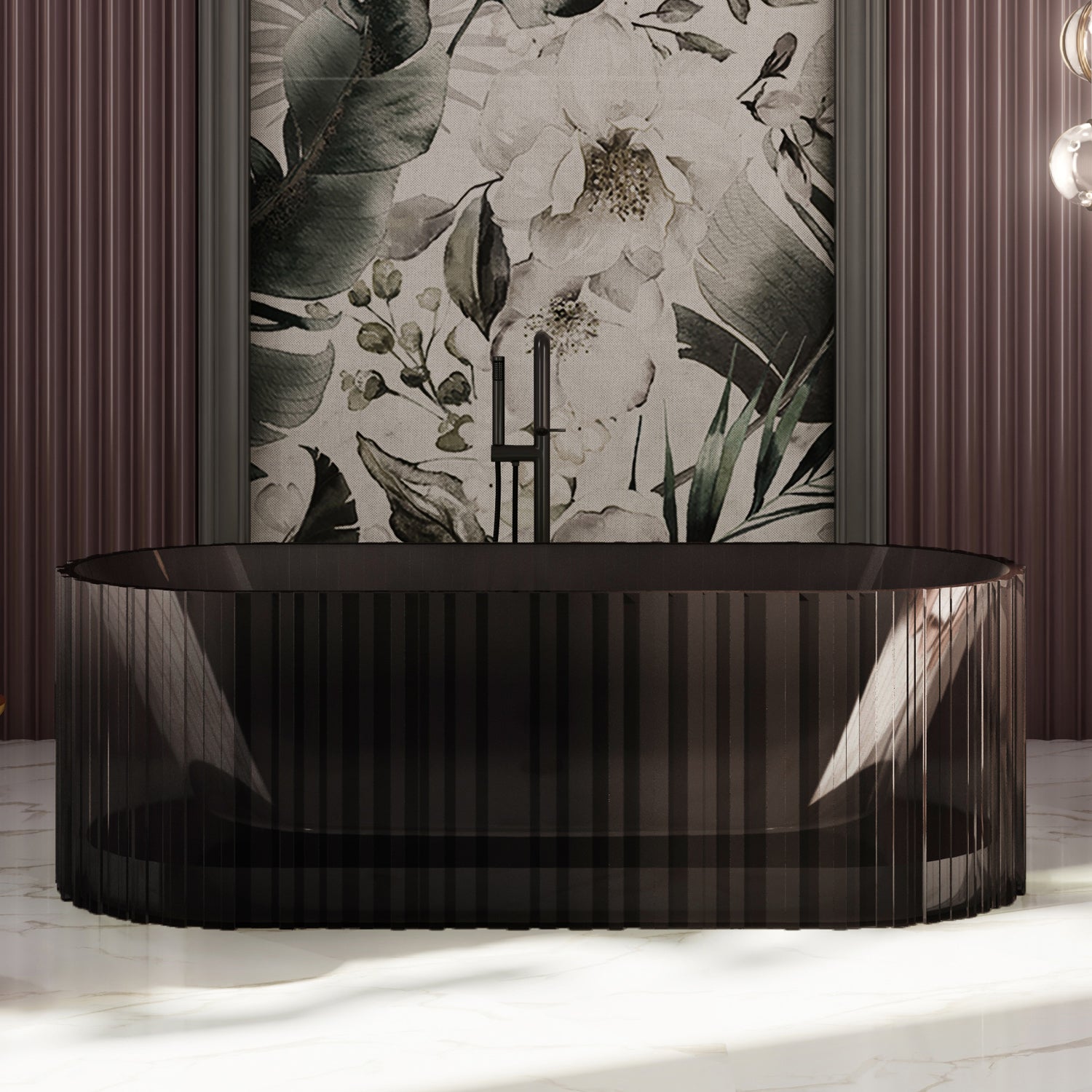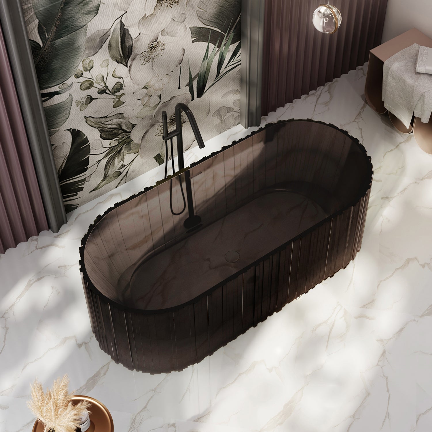 Bewater Transparent Series: Freistehende Badewanne aus Polyresin, ohne Überlauf, inkl. Ablaufgarnitur & Zubehör