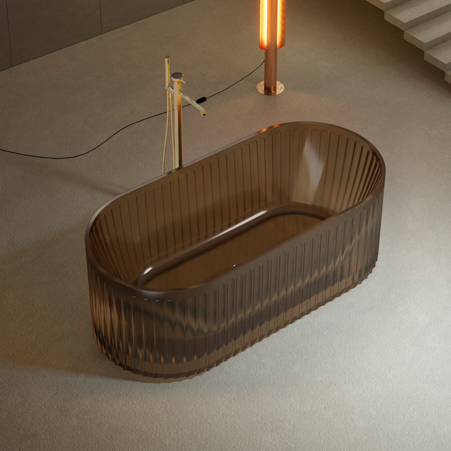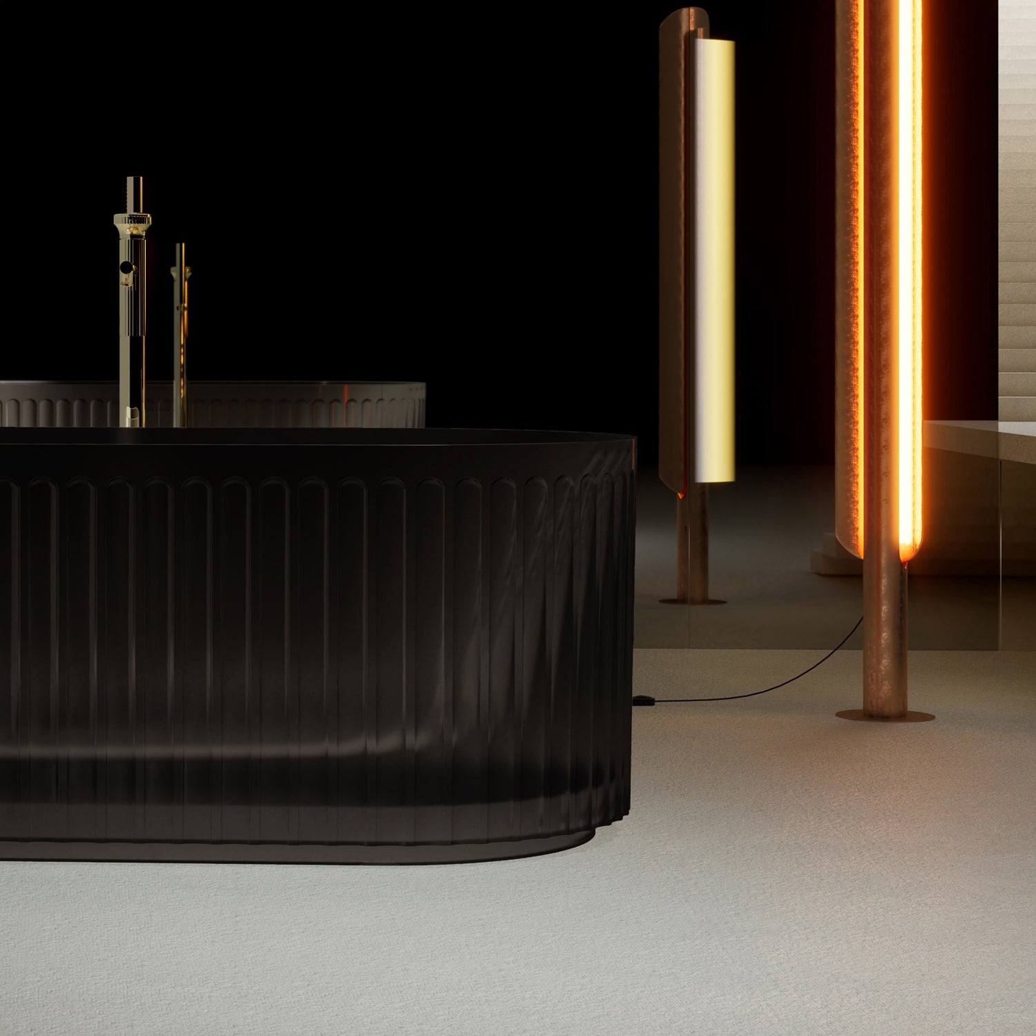 Diese moderne Badewanne aus hochwertigem, transluzentem Polyresin vereint skulpturale Ästhetik mit puristischem Funktionalismus. Ob als freistehendes Statement-Piece oder elegant in Wandnähe platziert – sie verleiht jedem Bad architektonischen Charakter und luxuriösen Komfort.