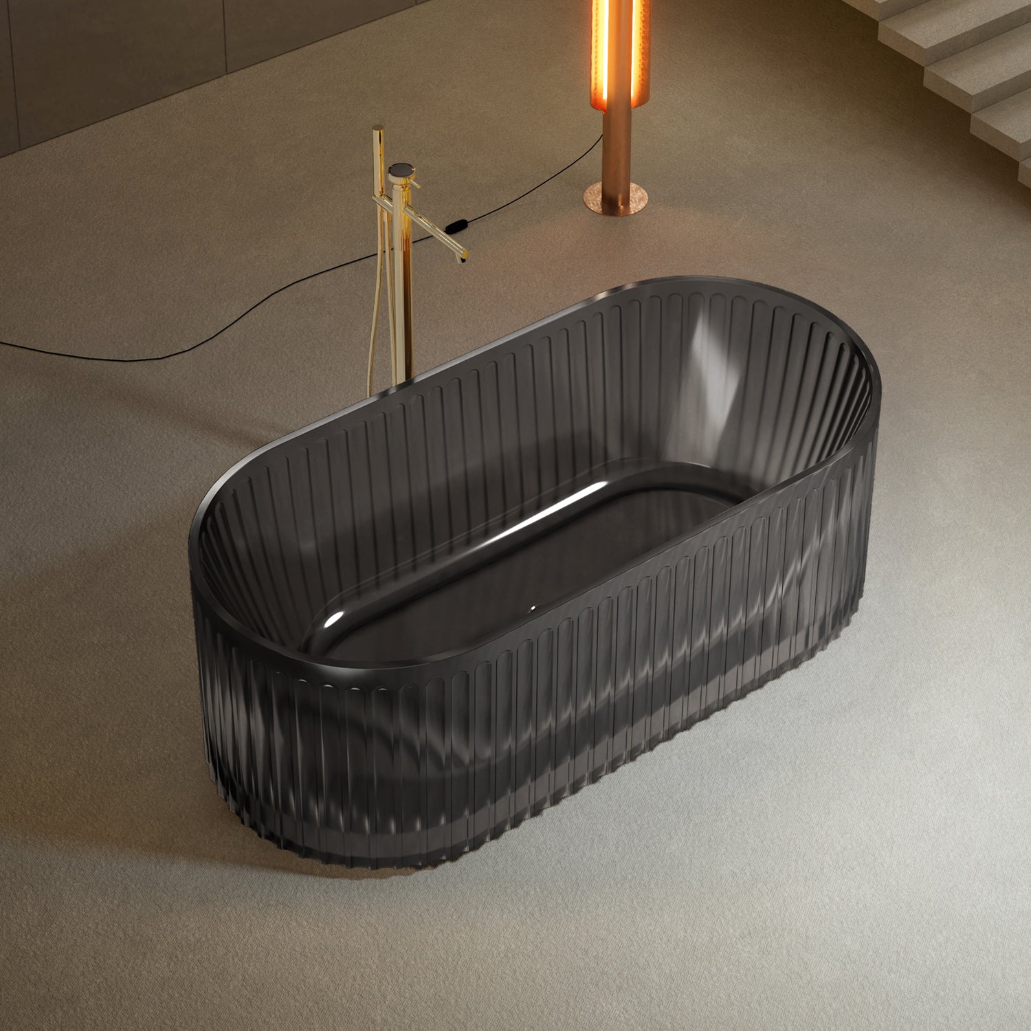 Bewater freistehende Badewanne, mit vertikal geriffelter Außenstruktur, inkl. Ablauflaufgarnitur