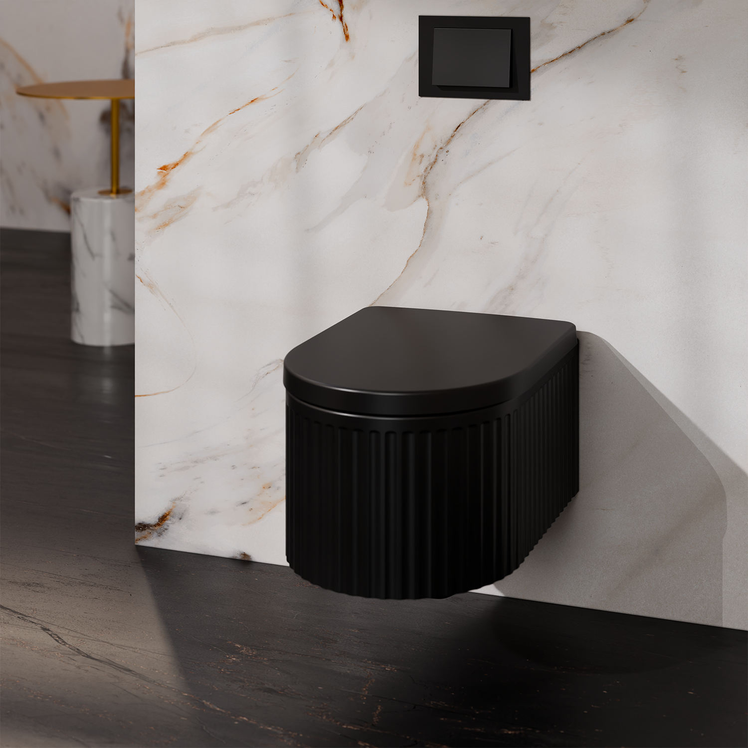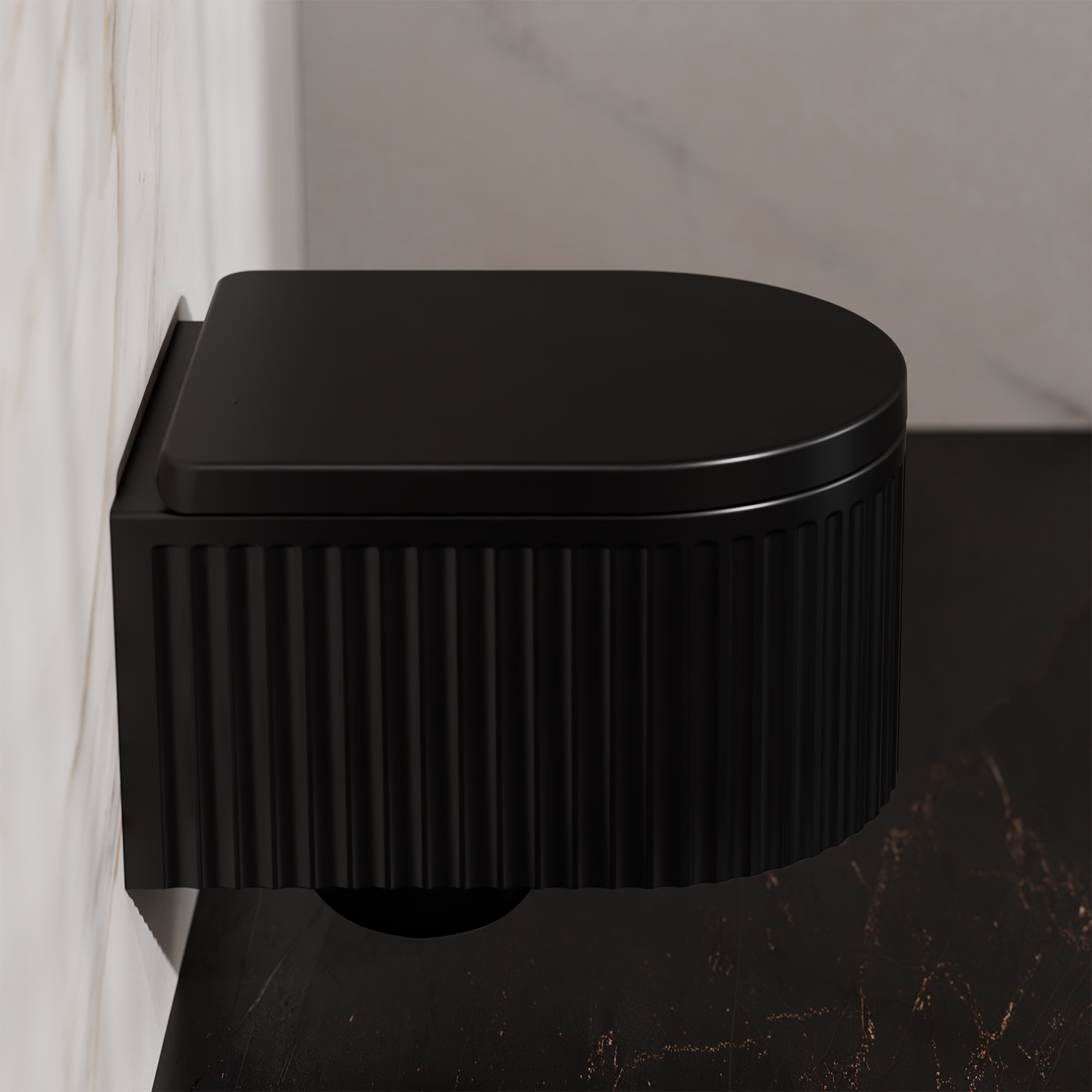 Treos Serie 810 ist ein wandhängendes, spülrandloses Tiefspül-WC mit WC-Sitz, aus schwarzer gleichfarbiger Sanitärkeramik und ovaler Form. Der WC-Sitz ist mit Absenkautomatik und abnehmbar und die Befestigung ist unsichtbar. Seine Abmessungen betragen 490 x 355 x 370 mm. Ein Set, das sich durch modernes Design, Haltbarkeit und Widerstandsfähigkeit auszeichnet.